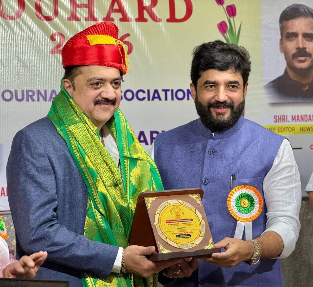 पुणे : मराठी उद्योजकतेचा अभिमान ठरलेल्या खाद्य उद्योजक अमित गोखले यांना केंद्रीय राज्यमंत्री मुरलीधर मोहोळ यांच्या हस्ते ऑल इंडिया जर्नालिस्ट असोसिएशन तर्फे प्रतिष्ठेचा “बिझिनेस एक्सलन्स पुरस्कार” प्रदान करण्यात आला.