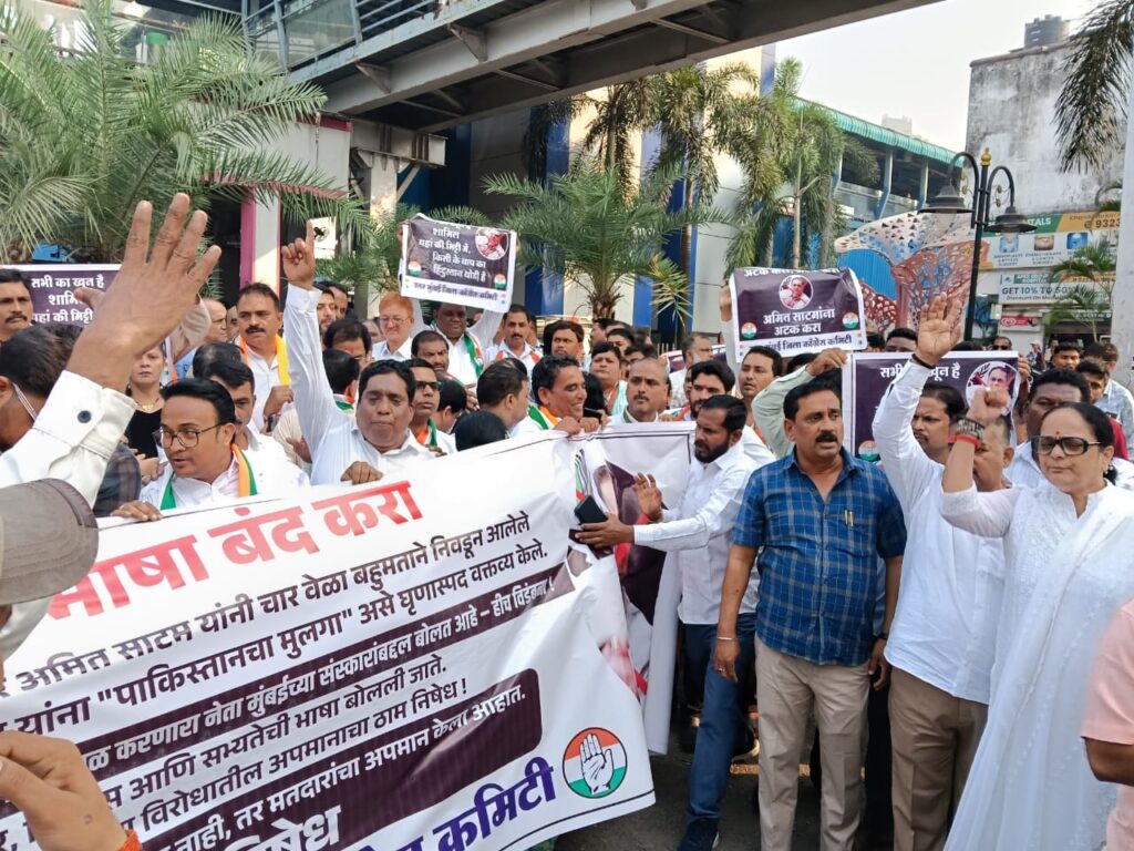 मुंबई : पूर्व मंत्री व कांग्रेस विधायक अस्लम शेख के खिलाफ भाजपा मुंबई अध्यक्ष अमित साटम द्वारा की गई कथित असंसदीय और अपमानजनक टिप्पणी के विरोध में कांग्रेस कार्यकर्ताओं ने जोरदार विरोध प्रदर्शन किया। यह धरना प्रदर्शन 24 नवम्बर 2025 को दोपहर 3:30 बजे बोरीवली (पश्चिम) स्थित पुलिस उपायुक्त, ज़ोन 11 कार्यालय के बाहर आयोजित किया गया।
