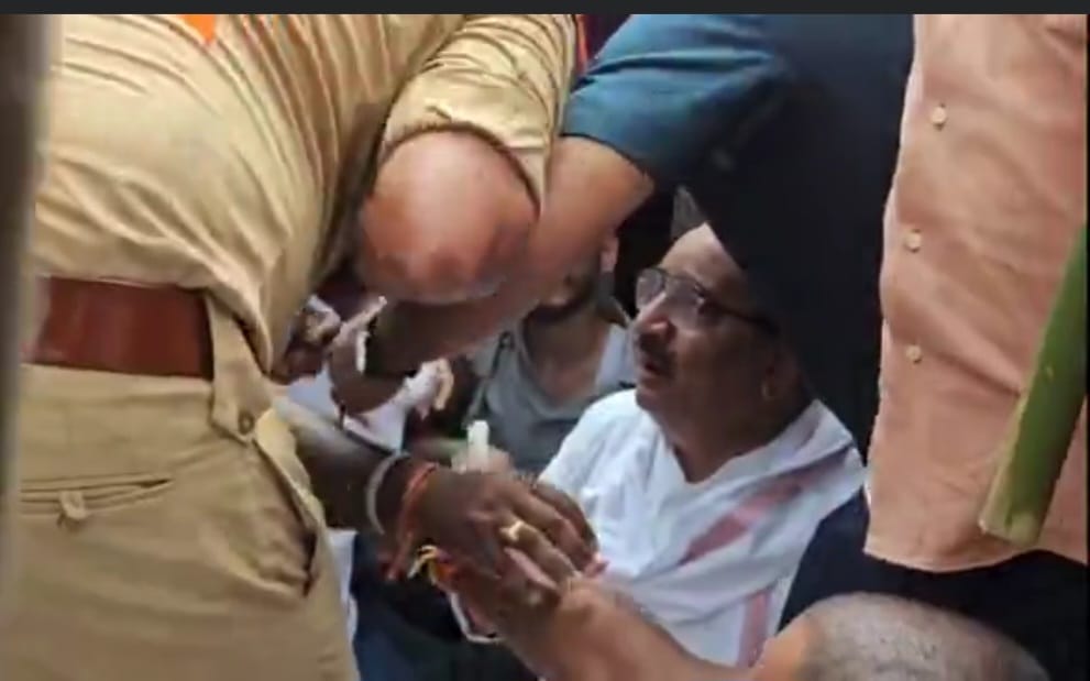 photo :निदर्शने करताना उत्तर प्रदेश चे मंत्री.