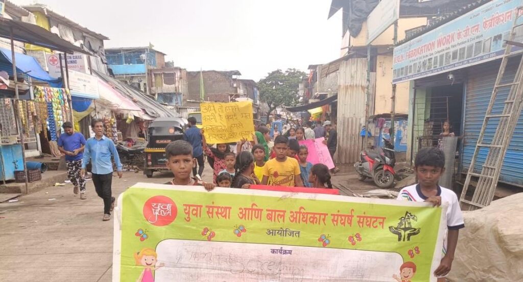 मुंबई: अंतर्राष्ट्रीय बाल श्रम विरोध दिवस के अवसर पर युवा एवं बाल अधिकार संगठनों ने ‘काम नहीं तो कलम पकड़ो’ नारे के तहत मुंबई में विभिन्न स्थानों पर बाल मजदूरी के खिलाफ रैलियां निकालीं। बाल अधिकार संगठनों ने मुंबई की विभिन्न झुग्गियों में बाल मजदूरी के खिलाफ जन जागरूकता रैलियां, फिल्म स्क्रीनिंग और नुक्कड़ नाटक के जरीये जनसामान्य का प्रबोधन किया।