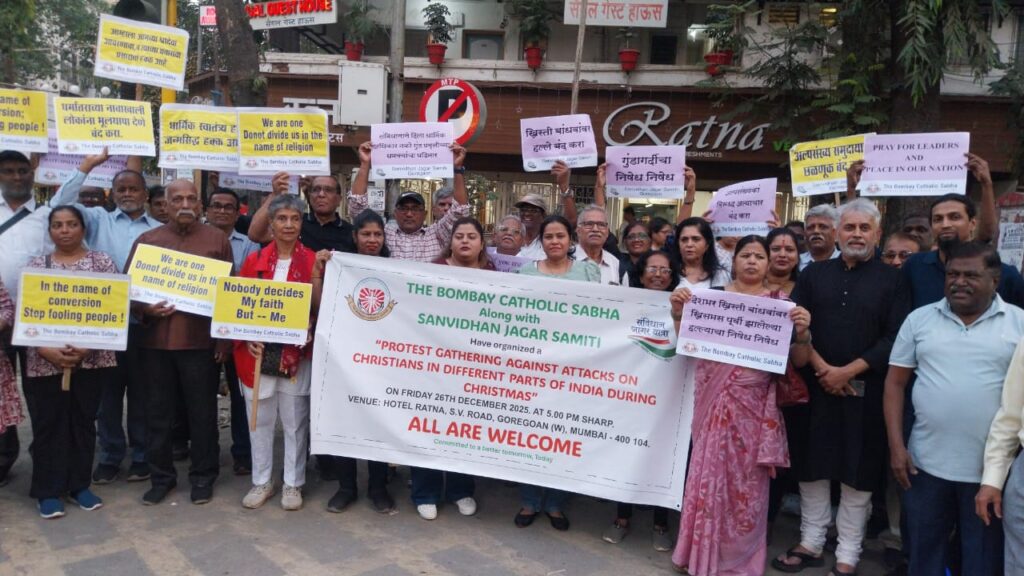 मुंबई : देश के विभिन्न राज्यों में क्रिसमस के अवसर पर ईसाई समुदाय के खिलाफ हो रहे हमलों, धमकियों और धार्मिक कार्यक्रमों में व्यवधान की बढ़ती घटनाओं के विरोध में शुक्रवार, 26 दिसंबर की शाम मुंबई के गोरेगांव पश्चिम में एक शांतिपूर्ण विरोध प्रदर्शन आयोजित किया गया।