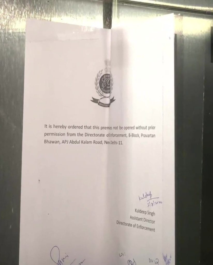 दिल्ली,प्रवर्तन निदेशालाय (ED)ने नॅशनल हेराल्ड का दिल्ली स्थित दफतर सील किया।साथ ही निर्देश दिये की अजेंसी प्रवर्तन निदेशालय (ED) की अनुमती के बिना दफतर खोलने पर प्रतिबंध लगाया है। कुछ दिन पहले ED ने सोनिया गांधी और राहुल गांधी की भी जांच की थी। जिस्के बाद राजनैतिक क्षेत्र मे गहमा गह्मी बदगयी है।