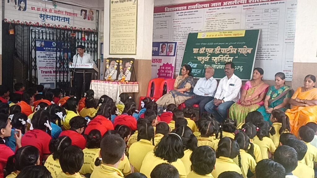 मुंबई :प्रा.डॉ.एन.डी.पाटील विद्यालय ,सह्याद्री नगर,कांदिवली (पश्चिम)येथे दिनांक १७ जानेवारी रोजी विद्यार्थी व सर्व शिक्षक वर्गाच्या उपस्थितीत प्रा डॉ एन डी पाटील सरांचा चतुर्थ स्मृती दिन साजरा करण्यात आला.