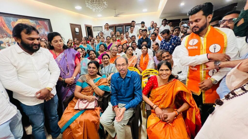 कल्याण : कल्याण पश्चिम येथील कल्पेश किशोर देसाई, भाजप उपजिल्हाध्यक्ष प्रमोद खंडागळे, राष्ट्रवादीचे सुरज सोनावणे, शिंदेगटाचे हर्ष लब्दे आणि सामाजिक कार्यकर्ते सुरेश शेट्टी ह्यांनी आज मातोश्री येथे शिवसेना उद्धव बाळासाहेब ठाकरे पक्षात प्रवेश केला. पक्षप्रमुख मा. श्री. उद्धवसाहेब ठाकरे ह्यांनी त्यांचे पक्षात स्वागत केले. प्रसंगी शिवसेना उपनेते विजय साळवी, उपनेते अल्ताफ शेख, भिवंडी लोकसभाप्रमुख साईनाथ तारे, जिल्हाप्रमुख अल्पेश भोईर, जिल्हासंघटक रेखा कंटे तसेच इतर पदाधिकारी आणि शिवसैनिक उपस्थित होते.