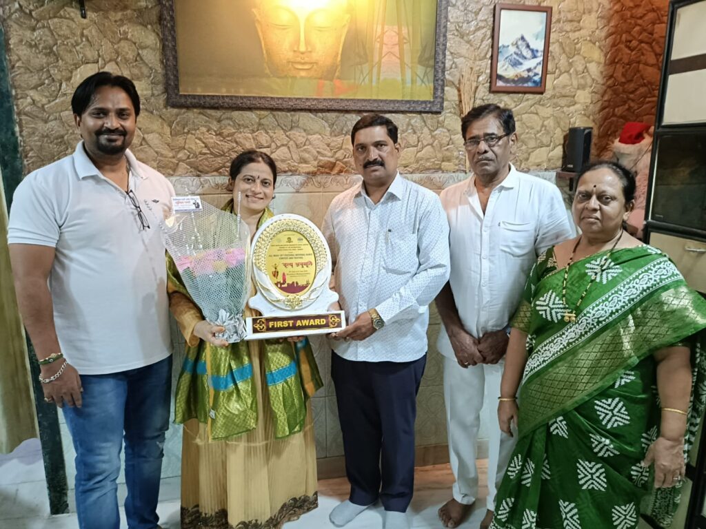 मुंबई : मालाड (पूर्व) येथील रहिवासी व ‘अश्‍मी नृत्यालय’ या नृत्यसंस्थेच्या स्थापिका सौ. अश्विनी अमित पवार यांना माटुंगा येथील मैसूर हॉलमध्ये आयोजित ALL INDIA 18th CULTURAL NATIONAL DANCE CONTEST & FESTIVAL ( नृत्य अनुभूती) पर्वात ” सोलो ओपन कॅटेगरी आणि जूनियर ग्रुप सेमी क्लासिकल” स्पर्धेत प्रथम क्रमांक मिळाल्याबद्दल गौरविण्यात आले. संपूर्ण देशभरातून स्पर्धकांनी भाग घेतलेल्या या भव्य सोहळ्यात अश्विनी अमित पवार ह्यांचा हा मानाचा विजय ठरला.
