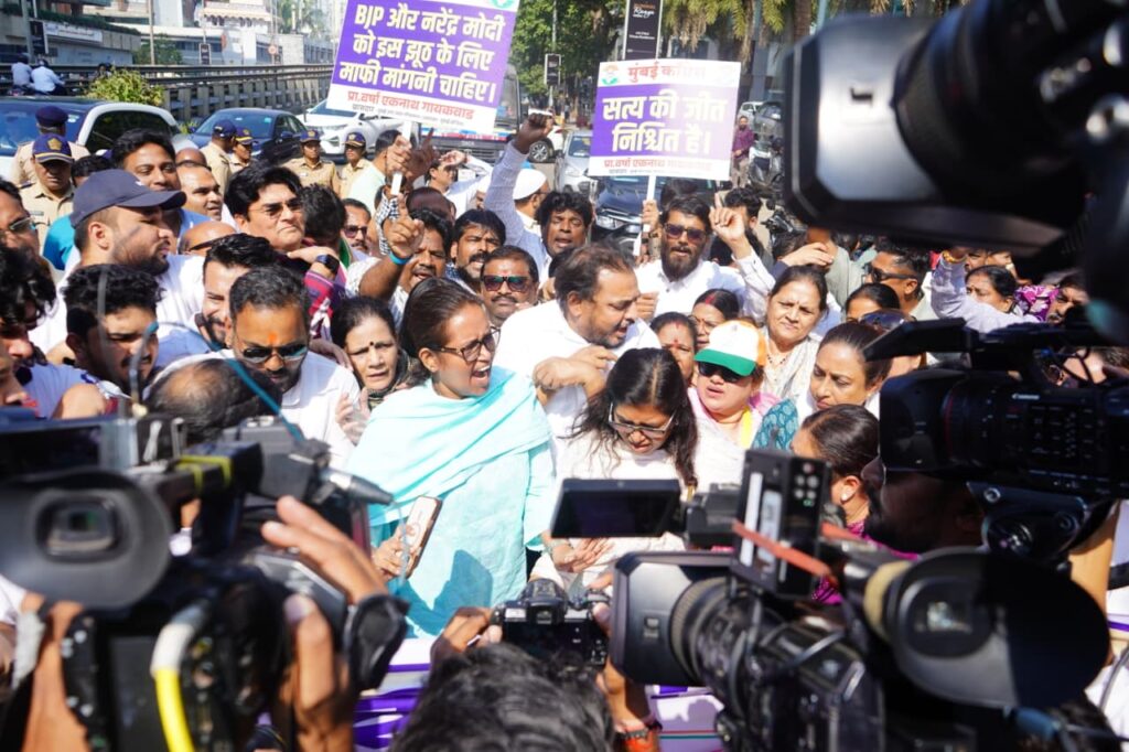 पुण्यातील १८०० कोटी रुपयांच्या जमीन घोटाळा प्रकरणी उपमुख्यमंत्री अजित पवार यांचा मुलगा पार्थ पवार यांच्यावरही कारवाई केली नाही. ९९ टक्के भागिदारी असणाऱ्या पार्थ पवारांना वाचवले आणि अधिकारी व इतरांवर कारवाई करण्यात आली. नॅशनल हेराल्ड प्रकरणी कोणताही गुन्हा नसतानाही काँग्रेस नेते सोनियाजी व राहुलजी गांधी यांच्या मागे चौकशीचा ससेमिरा लावला. तासनतास चौकशी करण्यात आली. सत्ताधारी भाजपा विरोधकांना नाहक त्रास देऊन कारवाई करते पण स्वतःच्या लोकांना वाचवते. सत्ताधारी पक्षाला एक न्याय व विरोधकांना दुसरा न्याय आहे का, असा संतप्त सवालही खासदार वर्षा गायकवाड यांनी विचारला आहे.