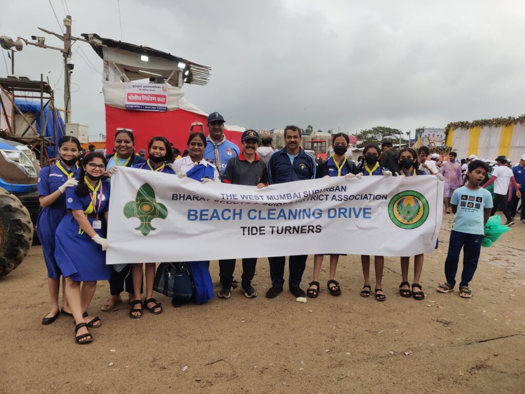 आणि गाईडचे विद्यार्थी आणि विविध महाविद्यालयातील विद्यार्थी शिक्षक उपस्थित होते.एन सी सी अधिकारी चंद्रकांत म्हात्रे यांनी सेंट लॉरेन्स हायस्कूल सांताक्रुझ मुंबई येथील छात्र सैनिकांना सोबत घेऊन साफसफाई केली.गणपतीचे अवशेष, निर्माल्य, पुठ्ठे, लाकडी मखर फुलांच्या माळा इत्यादी वेगवेगळ्या प्रकारचा कचरा आणि निर्माल्य साफ केला एकूण २ ते टन एवढा कचरा गोळा केला आणि महानगरपालिकेच्या चौपाटीवर गाड्या फिरत होत्या त्या मध्ये टाकून दिला.
