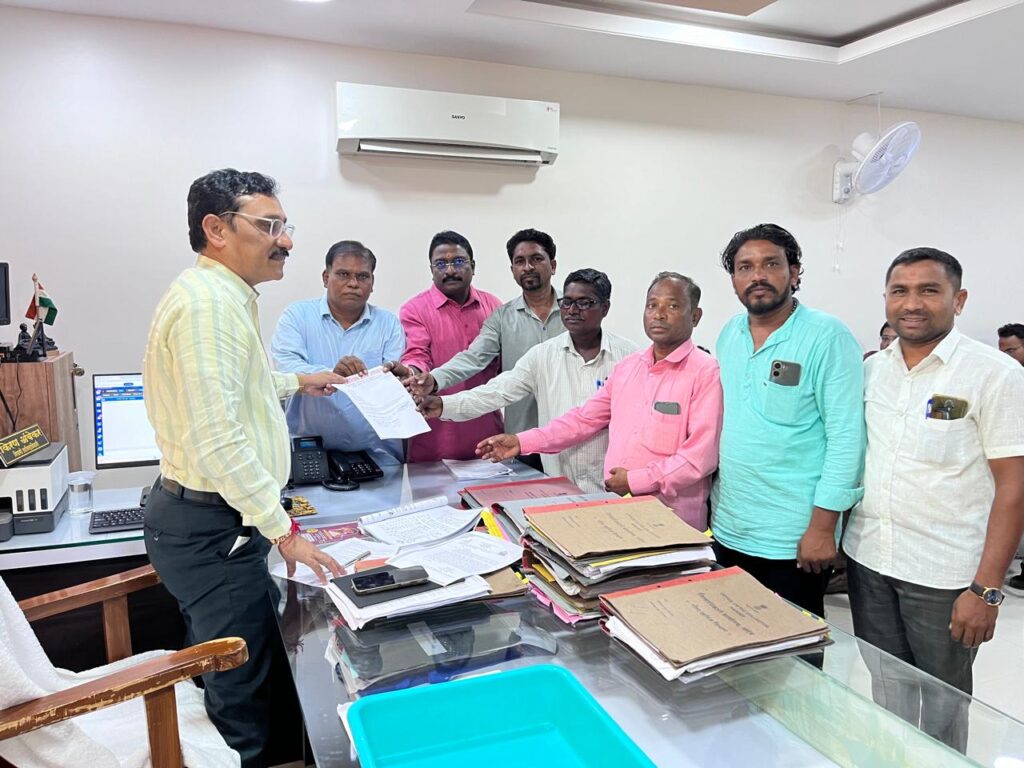 नांदेड : दिनांक 12 ऑगस्ट रोजी जिल्हाधिकारी कार्यालय नांदेड होते जिल्हाधिकारी यांची भेट घेऊन शेतकऱ्यांचा सातबारा कोरा करावा आणि ईव्हीएम हटवून हटवून बॅलेट पेपर वरती निवडणुका घ्याव्यात मतदार यादीत असणारा घोळ कमी करून नवीन याद्या कराव्यात अशा आशयाचे निवेदन मुख्यमंत्री,मुख्य निवडणूक आयुक्त, राज्यपाल यांना जिल्हाधिकारी मार्फत निवेदन देण्यात आले.