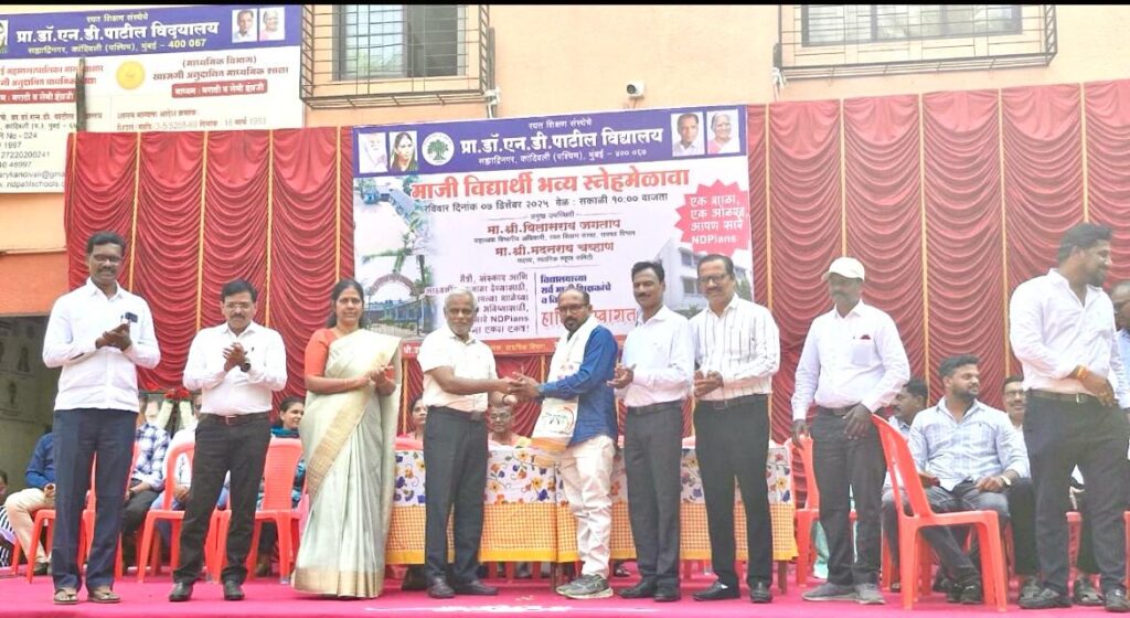 मुंबई :चारकोप सह्याद्रीनगर, रयत शिक्षण संस्थेच्या प्रा. डॉ. एन. डी. पाटील विद्यालय, सह्याद्रीनगर येथे आज झालेल्या माजी विद्यार्थी स्नेहमेळाव्यात शाळेच्या माजी विद्यार्थी संघाची औपचारिक स्थापना उत्साहपूर्ण वातावरणात करण्यात आली. या मेळाव्यास रायगड विभागाचे सहाय्यक विभागीय अधिकारी व विद्यालयाचे माजी शिक्षक विलासराव जगताप, स्थानिक स्कूल कमिटी सदस्य मदनराव चव्हाण तसेच माजी शिक्षक विकास गायकवाड, शामराव गायकवाड चंद्रकांत शिंदे, उत्तम शिंदे, विलास लेंभे, नारायण बिचुकले,अशोककुमार गरुड, शारदा भोईटे, वेदपाठक, उज्ज्वला जगताप, सरिता शिंदे, विनोद घाटगे, के. जी. जगताप, देशमुख आदी मान्यवर उपस्थित होते.